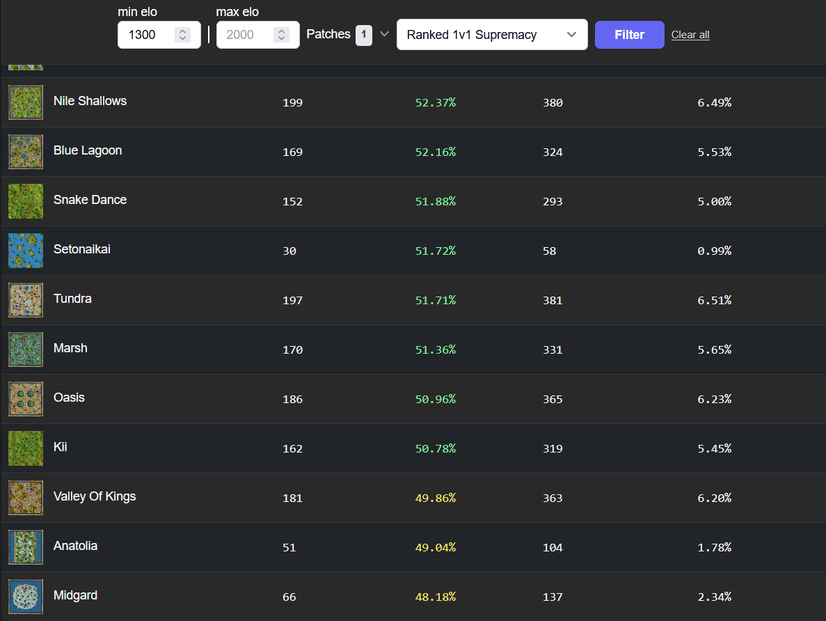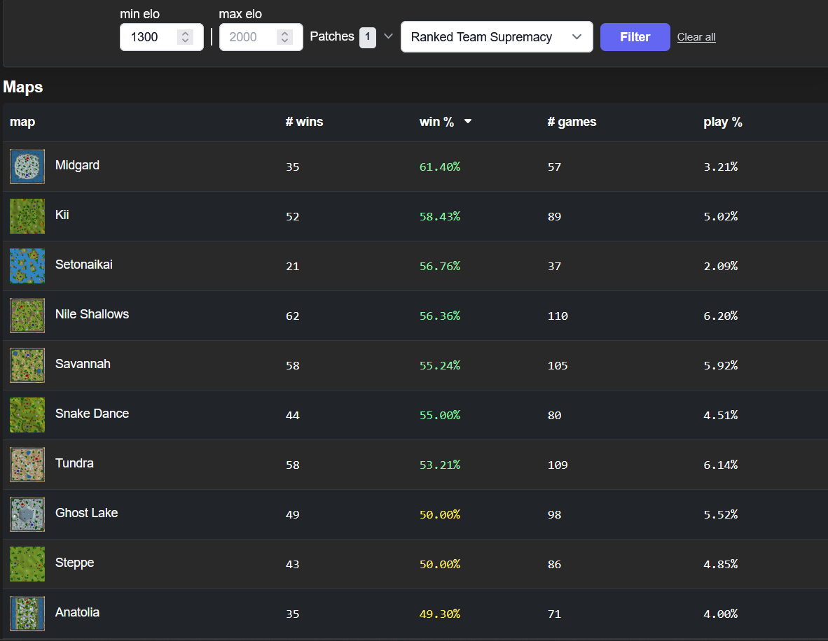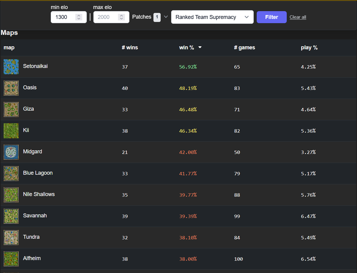 - Give players map bans like aoe2, or map downvotes like aoe4; and