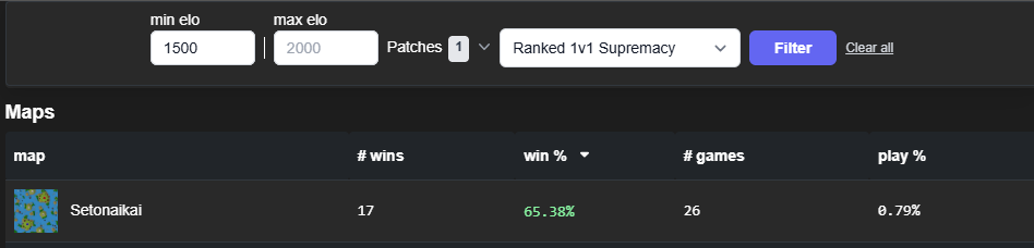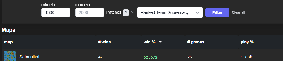 That’s right, no one will invest in water in a 1v1 game, but in 3v3 it works. That’s why Amaterasu only wins on Setonaikai, and elsewhere she has a 38% win rate in team games. This doesn’t contradict what I said about Japan on the water. In Anatolia, you can fight on land, so Amaterasu has a low win rate there too, but in Setonaikai, Lightning ships can carry the base. That’s where Amaterasu starts to win. I’m generally surprised at how conveniently you ignore everything I show you. My screenshots show that Amaterasu wins team games ONLY on setonaikai