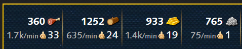 Example of how easy it is to analyze who collects more per minute or has more resources if they are highlighted