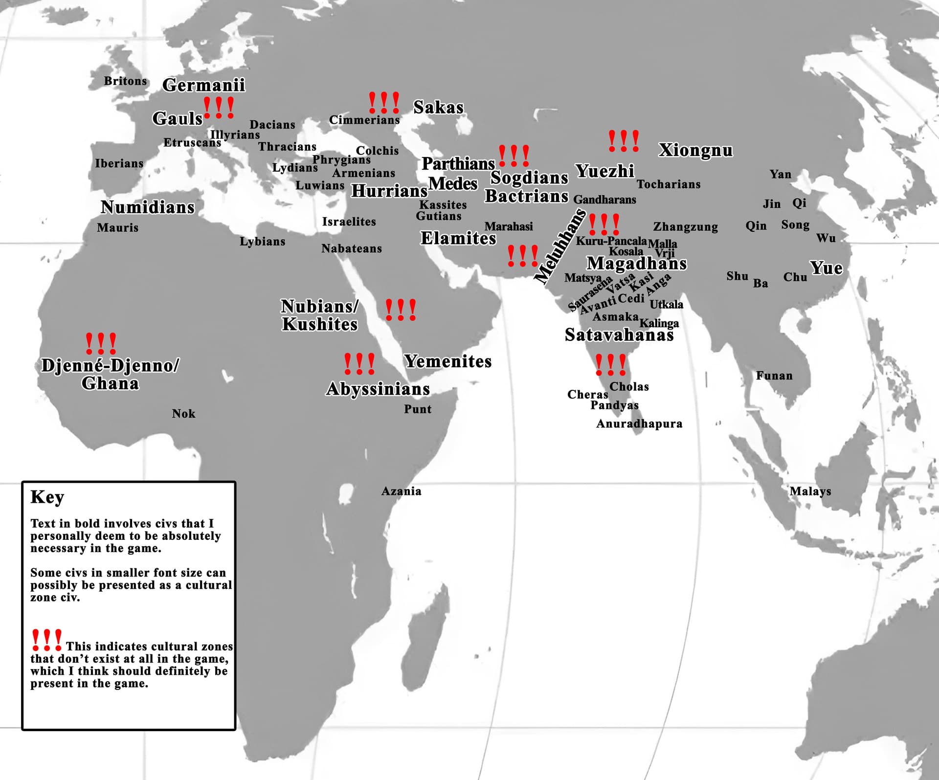 To be clear, even at the most generous, I donât think all of these divisions need to be civs, just as all of the 16 Mahajanapadas donât need to be. What matters is meaningful geographical & cultural distinctions that translates to interesting gameplay.
