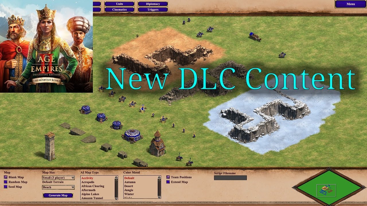 So far, all new scenario assets in DE (apart from the new civs themselves, their castle/wonder sprites, and everything in the RoR mode) have actually been added to the editor for free in game updates and havenāt been locked behind the new DLCs. I would like it to stay that way, so the placement of Folwarks or Mule Carts in a custom scenario wonāt make it inaccessible to those who donāt own the right DLC.