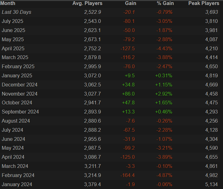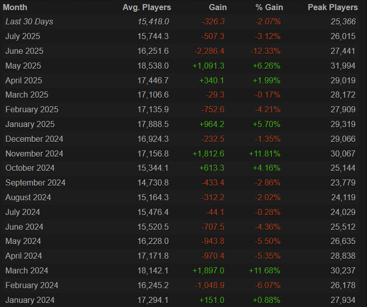 Checking the avg players since January 2024… this is doubtful as figures remained stable: