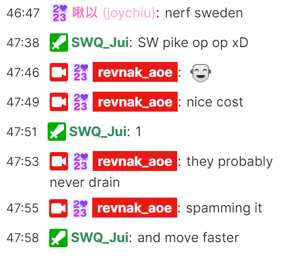 If we gonna predicate balance off one game, we now cancel eachother. So now what? Since the only metric is our pros, who never get anything wrong in 1 game per you, i guess we need to see a port organ player vs sweden pike spammer. Until then its balanced shrug.