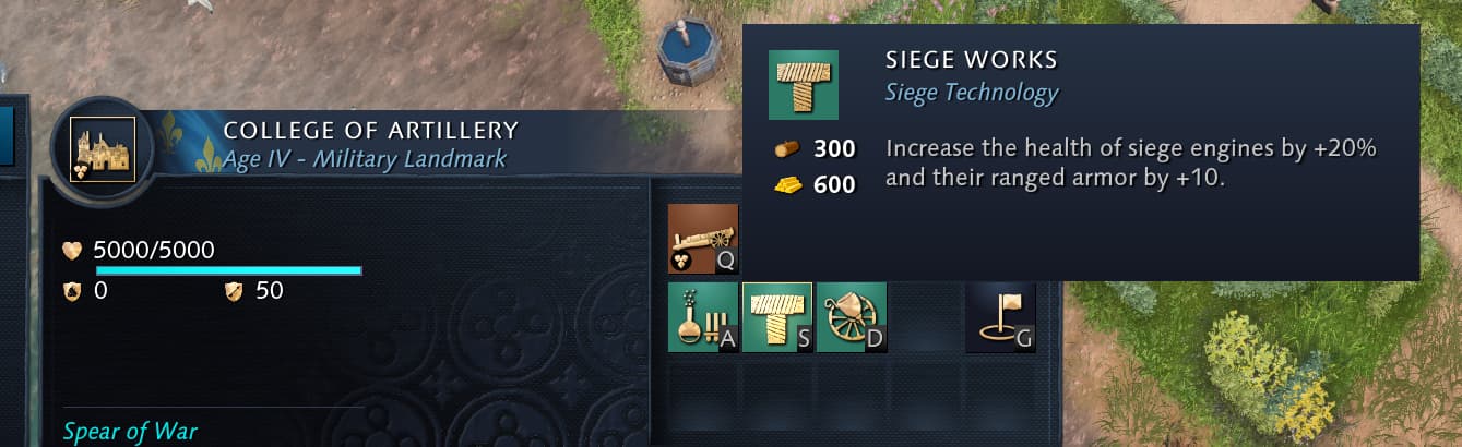 The version of siege works in the College of Artillery still has the old tooltip with the +10 ranged armor and the lack of flavor text,