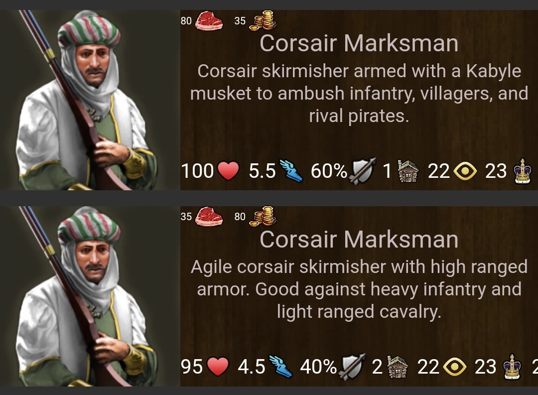 I’ll reiterate: Unless hausa can get corsairs and preferably desert infantry down to 1 pop, all of the civs amazing outlaw bonuses will always be underwhelming in all game modes. I do think ot should be locked behind a tech. I also think one outlaw card should be moved out of age 3, its a little crowded. Maybe the cost reduction could be age 1? It would open up a slightly greedier open in a rush. If it stacks with berber vills (i think it does) it could be a unique way to stretch your influence a bit in a greedy build order too.