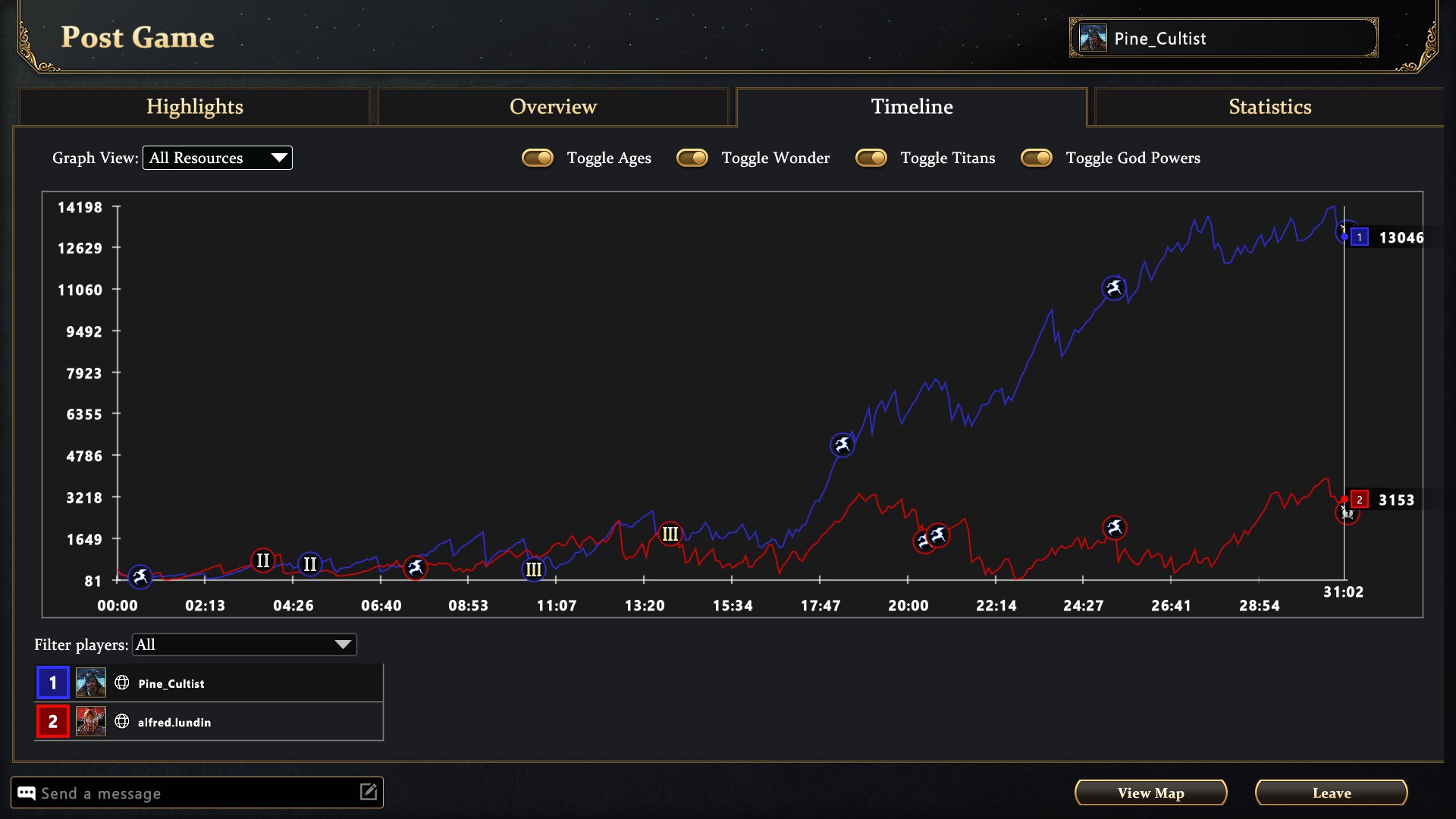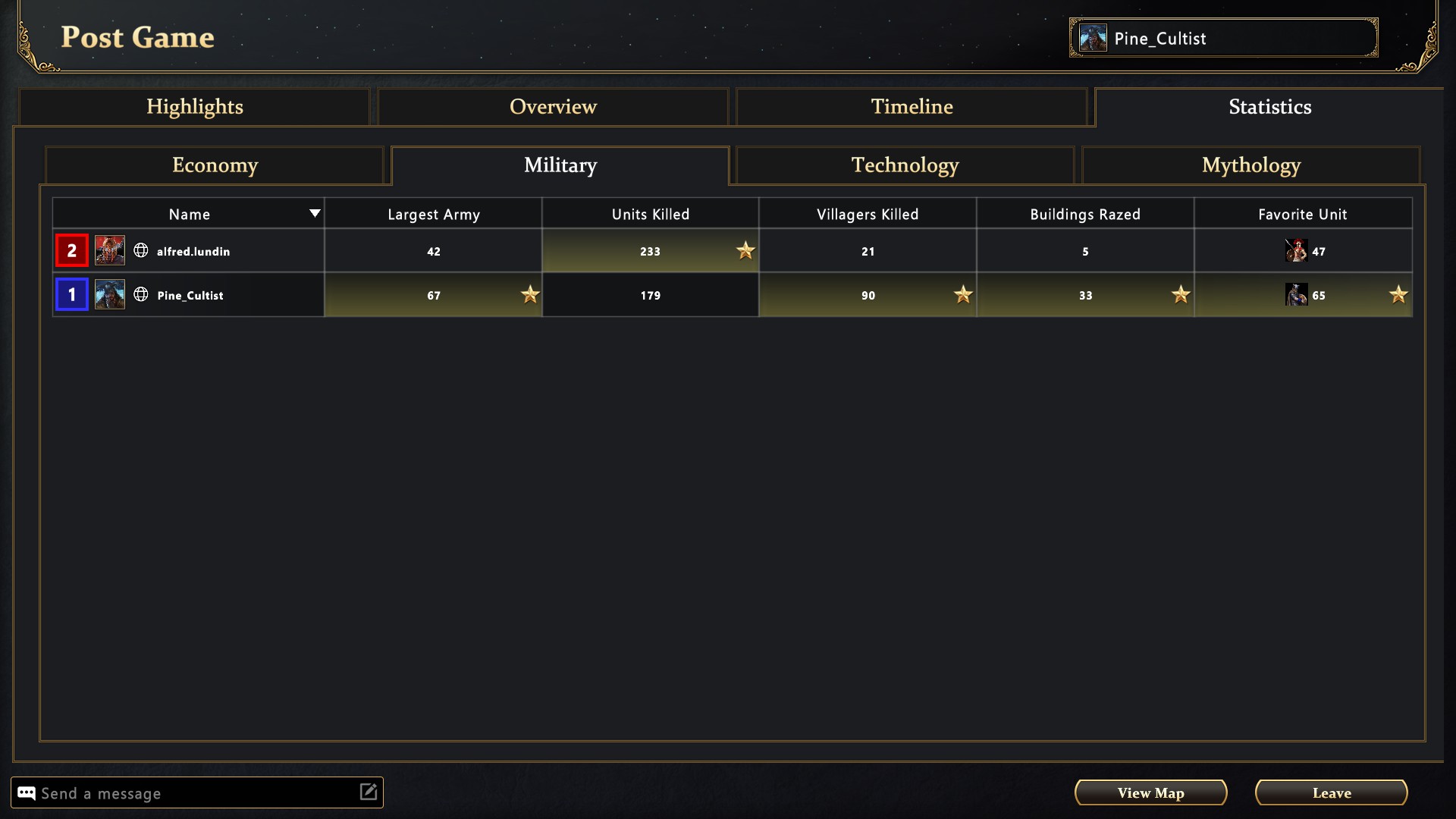 I completely agree. That’s what I’m talking about. It should depend on the player’s skill. I fought a noob who did one stupid thing after another, lost all his peasants, but still beat me in battle, simply because he chose the “right god”. I had a lost fight with Gaia. It was a very interesting fight, I liked it and I’m not complaining. I can definitely see that I was outplayed. But when I fight for 30 minutes with a person who has no idea what he’s doing and can’t win - it’s absurd.