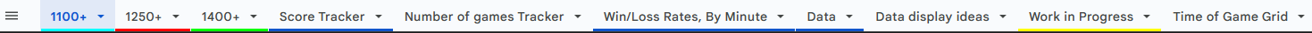 You might not know that the excel sheet doesn’t end with only the civ grid. There is way more data to it. This thread will try to summerize briefly about the other content you can check inside. In the buttom of the sheet you can see that there are several others pages as well, including 'Win/Loss Rates, By Minute’, ‘Score Tracker’, ‘Data display ideas’ , ‘Work in Progress’ and ‘Time of Game Grid’.