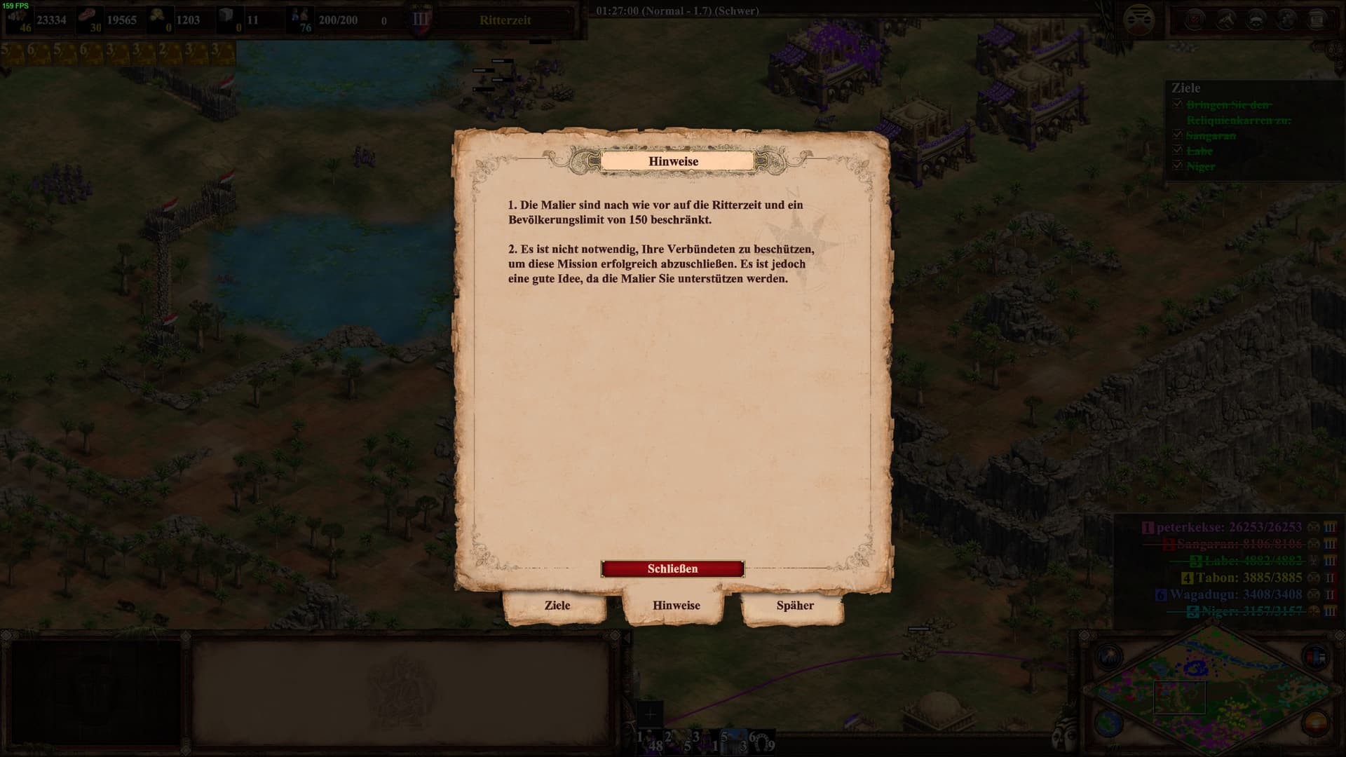 The intended pop Limit of the 2nd mission from the sundjata campaign of 150 does not work. The (german) scenario description says 150 population is the maximum. But i could get up to 200 pop with just building more houses.