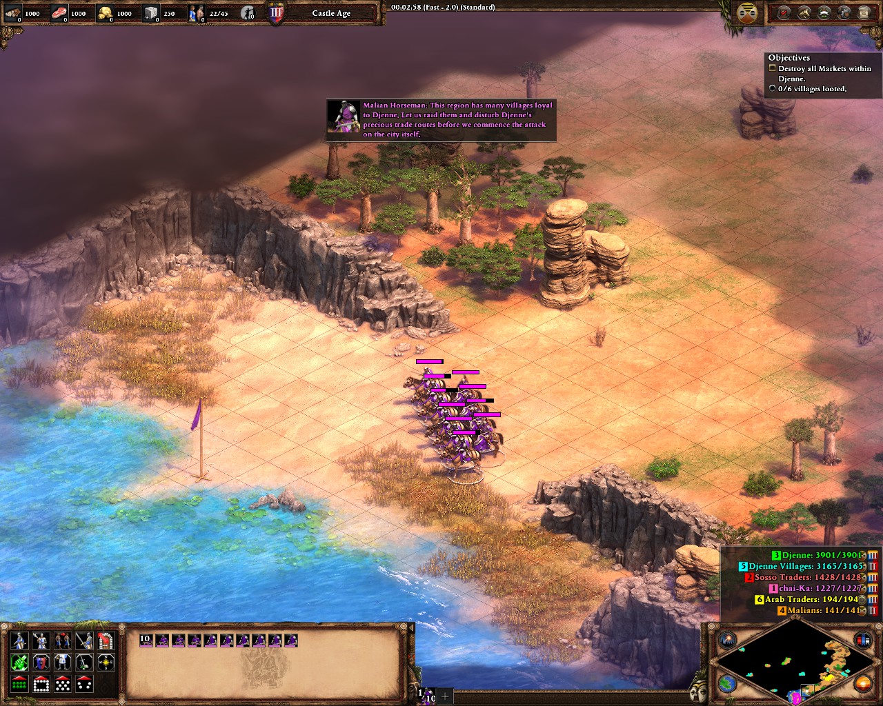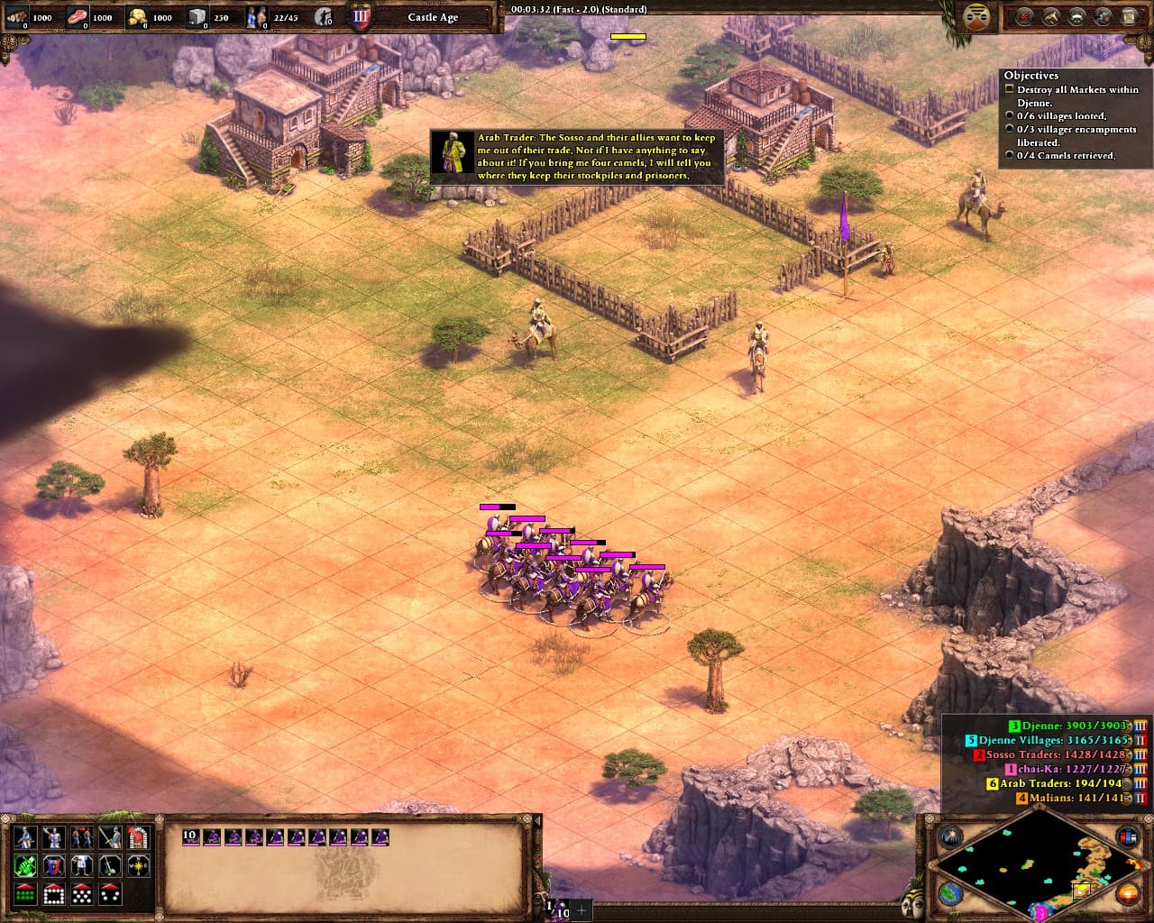 In Sundjata 3, the arab trader to the east offers a quest - return 4 camels for him and he will reveal to you were your enemies keep their stockpiles and prisoners. However, this information is already provided for you for free just by visiting your camp, so completing this quest ends up having no effect at all.