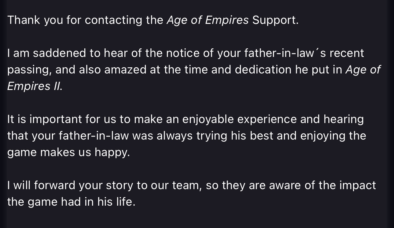 Hopefully this gets some visibility to the right community staff / internal team that worked on AoE II.