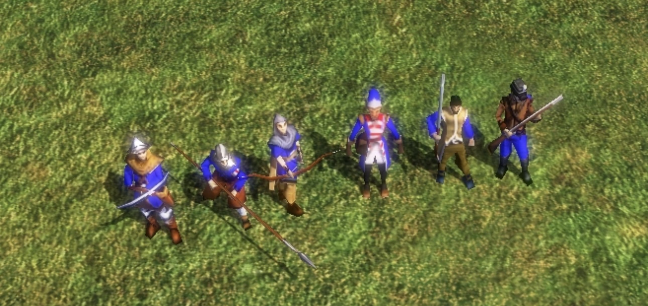 This is to cut the units * Because combat was planned to occur in the Discovery Age, most of the infantry and cavalry units from the civilizations in the base game had four visual updates created for them. The majority of the Discovery Age’s European civs models were cut, though a few European civs units like the Skirmisher and Halberdier utilize their 1age models instead of using ones meant for later Ages. Some units, like the Cuirassier and Lancer, only use two of their four visual updates, as they first become available to players starting with the Fortress Age. While the intended usage for the models was scrapped, the assets remain in the files and can be modded back into the game, as almost all of them appear to have been finished by the time they were cut.