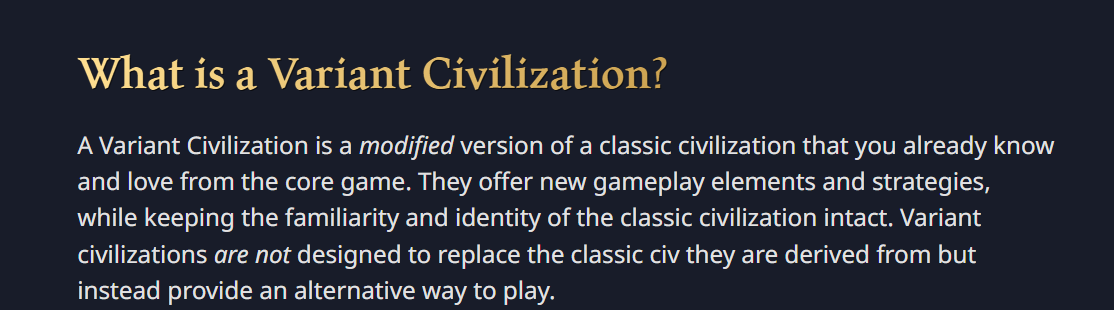 - “Most players wanted the variants not to be “cheap” copies of the original civs.”