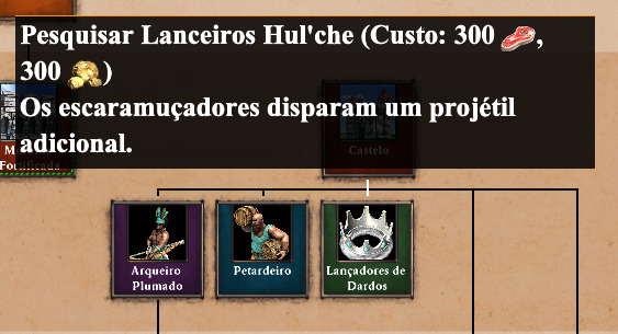 And the Blackwood Archer becomes Arqueiro Tupi (I guess there’s no Portuguese term equivalent to Blackwood), but for some reason the hover tips for it and its upgrade say “Arqueiros” instead of "Arqueiro.
