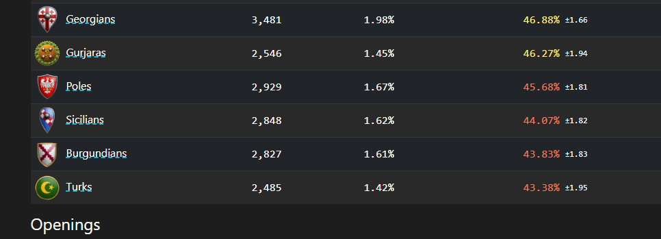 I think this picture explains a lot … +1200 ranks Turks are WORST CİV … I believe Turks and Gurjaras immediately need some help here. It looks ridiculous.