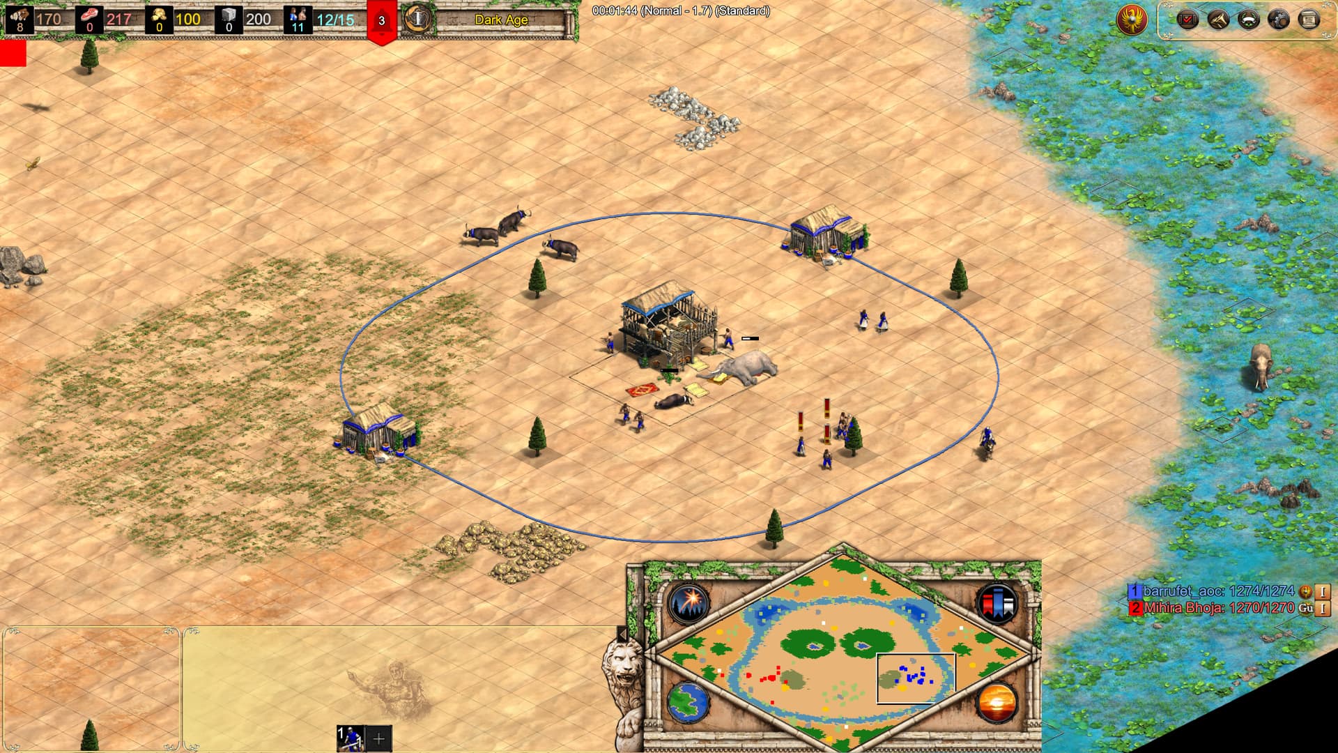 Task villagers to gather hunt food (deer/boar)