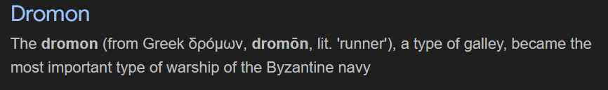 • The Dromon was a Roman bireme adapted to use Greek fire in addition to the battering ram/spur it used to pierce other ships. In other words, it’s a unique Byzantine variation.