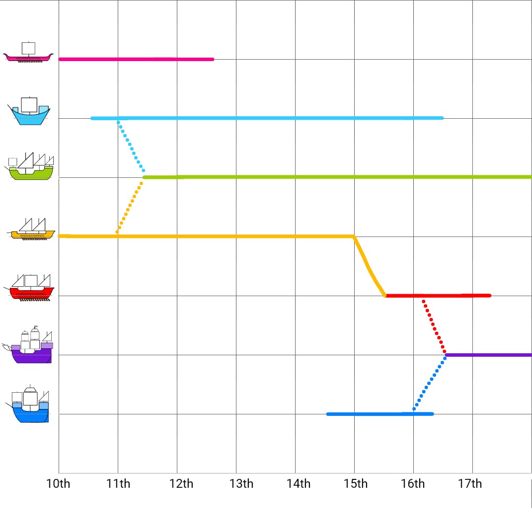 I can draw a picture later to illustrate the evolution of these ships, if anyone would like.