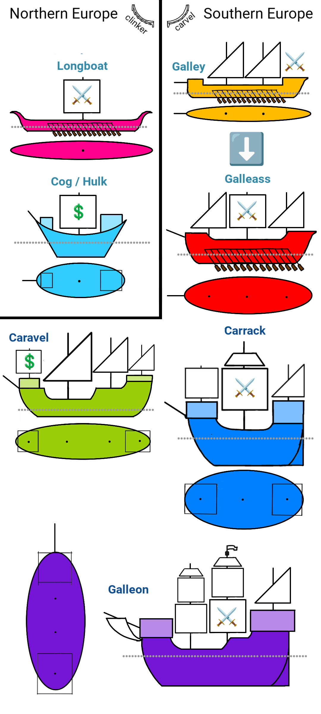 Edit: I forgot to add that (1) galleys and dromons stopped using rams/spurs during the Middle Ages, so they basically either boarded or used Greek fire, since arrows alone can’t sink a ship. And (2) only the Carrack, Caravel, and Galleon could sail the ocean.
