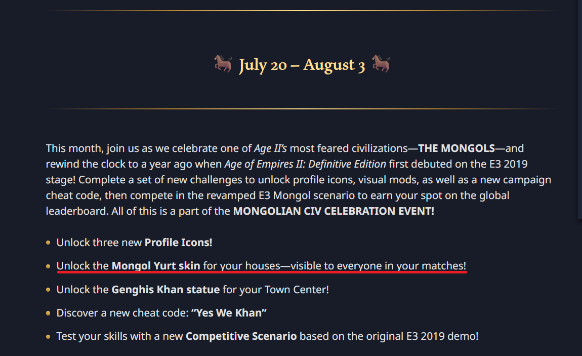 Again, it is difficult to identify the new regional units but there are just 5-6 civs with a regional stable unit. Your suggestion adds skins to ALL civs’ knights and light cav. Totally fine if its an option that can be disabled, don’t want it forced upon everyone.