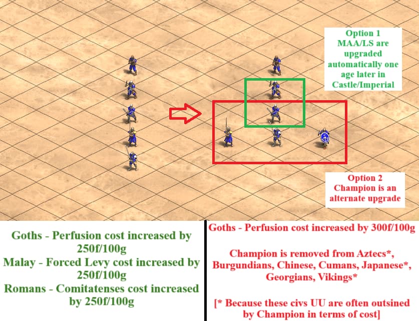 almost on point except the free automatic upgrade thing. Road to LS should be simplified. I have said several times making M@A instant research after reaching Castle Age. If civs have Champs then they should be able to research Champs only instead of waiting for 2HS.
