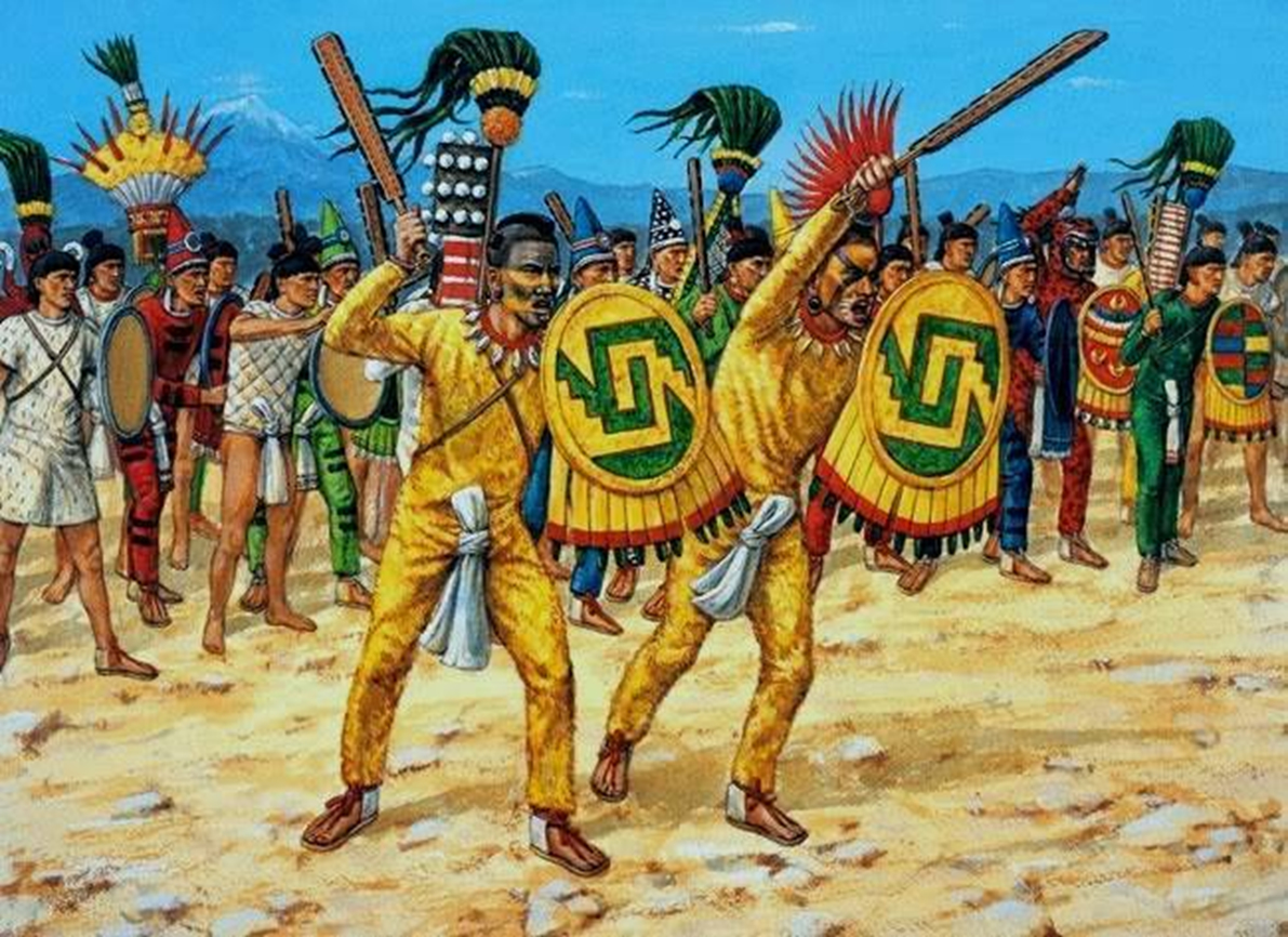 In times of war, Aztec priests would leave their robes and go to fight on campaign. There were several types, and they were given extra tunics each time they captured more soldiers in battle.