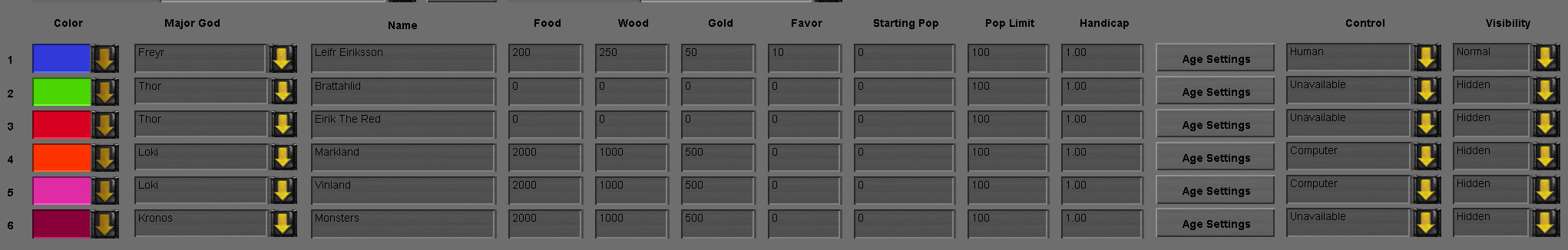 But as we can see, player 2 and 3 are both visible and that one can seemingly change their Major God and player Colors as they please. But in reality the Major God changes apply to players 4 and 5 (who have AI) and the player color changes apply to players 2 and 3.