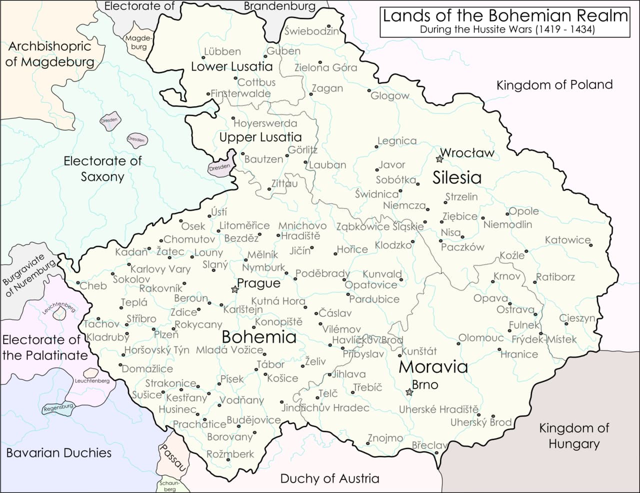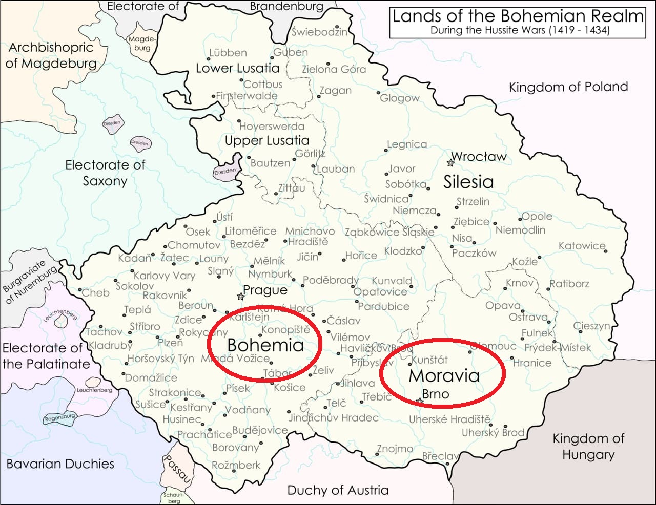 Nope. Because both lands are listed under the âBohemian realmâ in the same picture, also called âLands of the Bohemian Crownâ which Moravia was a part of.