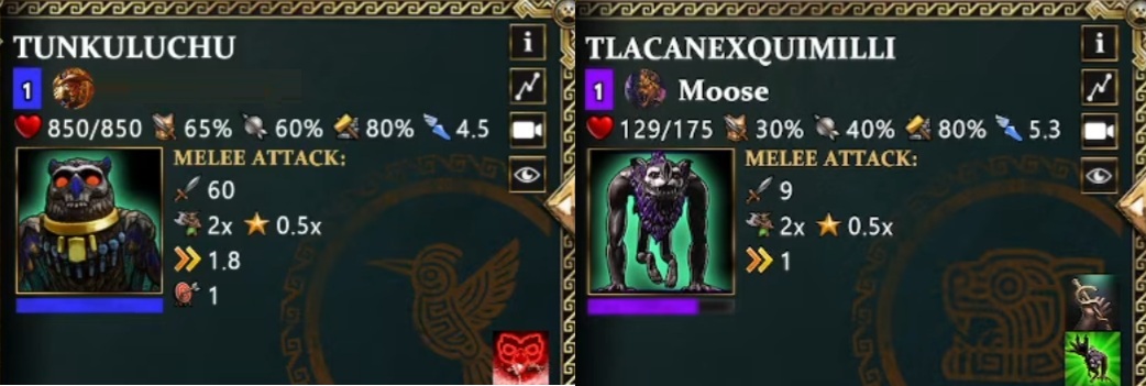 1.) So, for those who don’t know, Tunkuluchu is a word that the ancient Mayan people used. It is not the Aztec language aka the Nahuatl language. Plus, it resting on Mictlantecuhtli’s body further indicates that the unit is indeed of Aztec origin. Unless there is a reason for this, which we will maybe uncover in the campaign story?
