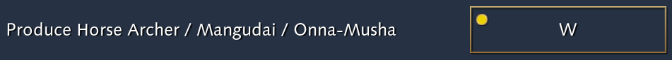 in the remappable hotkeys, golden horde kipchak and onna musha share the same hotkey: