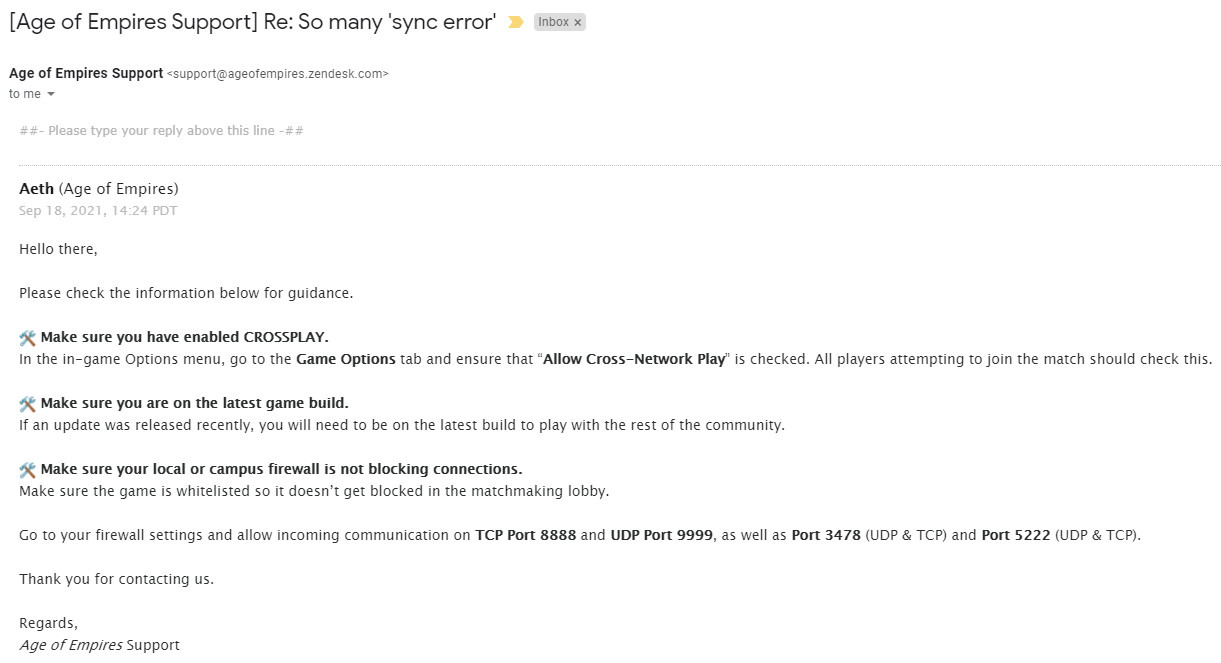 And to add more fuel to my frustration fire, AOE Support team responded with a ridiculous message below.