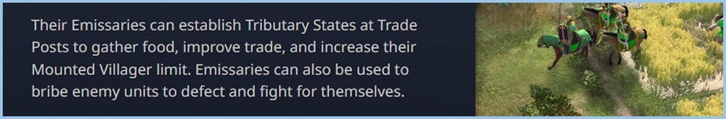 Interestingly, it seems these Mounted Villagers have a production “limit,” according to the emissary description:
