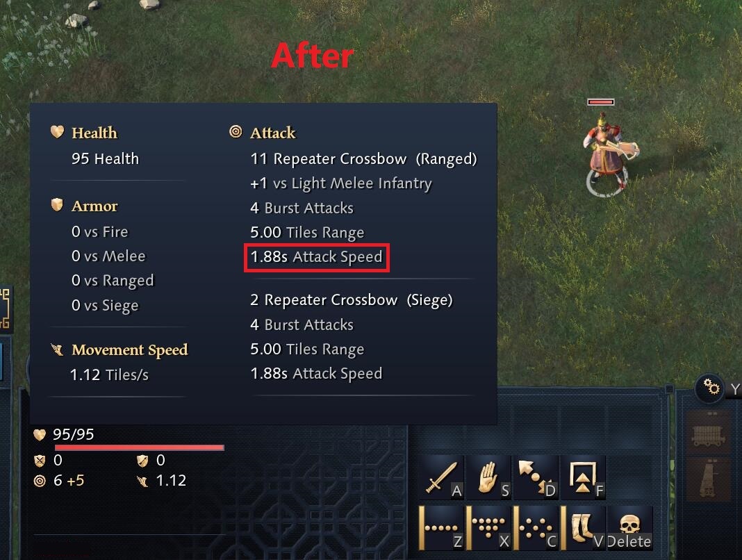 You have just fixed the attack speed Bug of ZXL’s Crossbow after researched 10000 Bolts, but ZhugeNu still have same BUG which is ignored. And this isn’t a textual mistake.